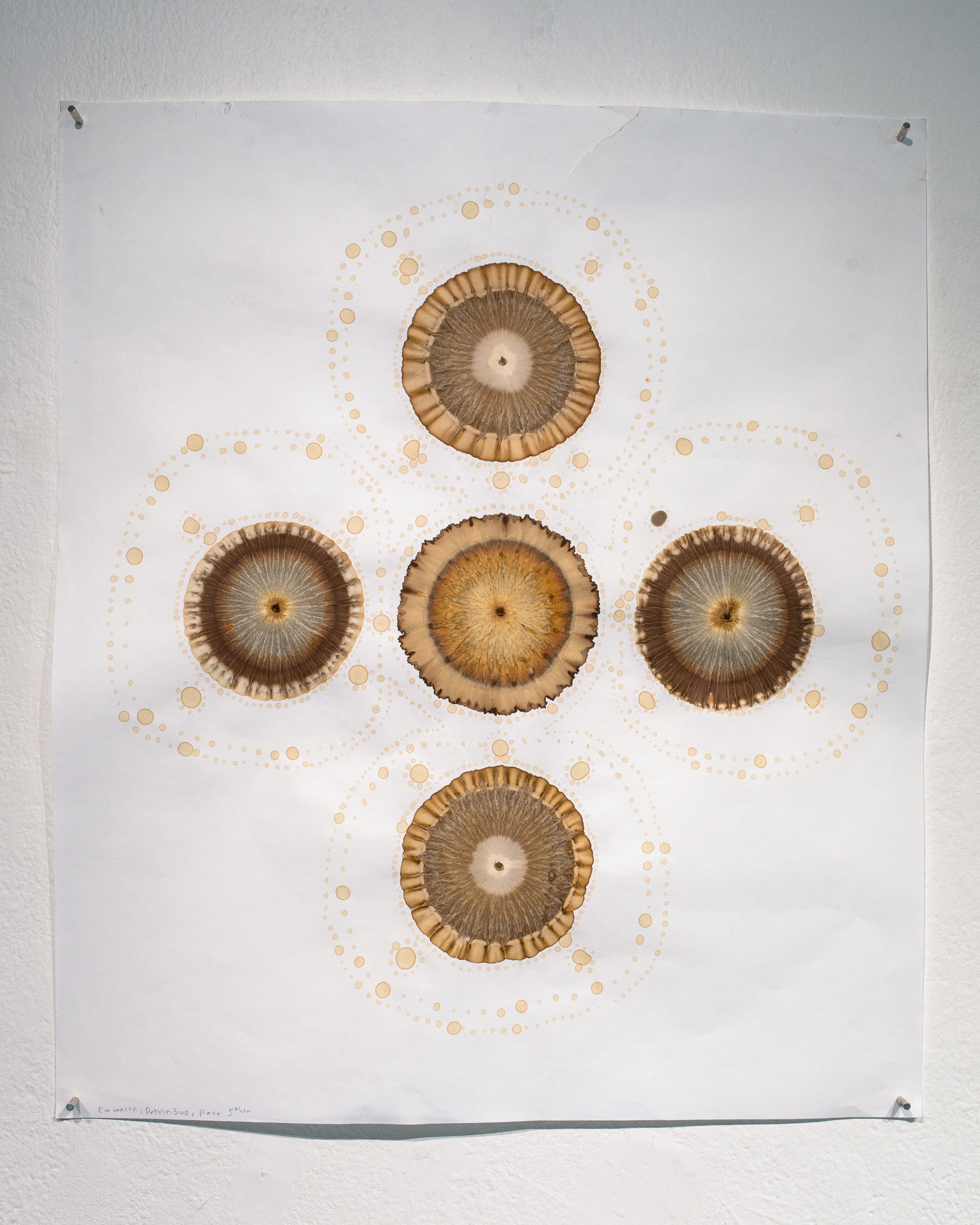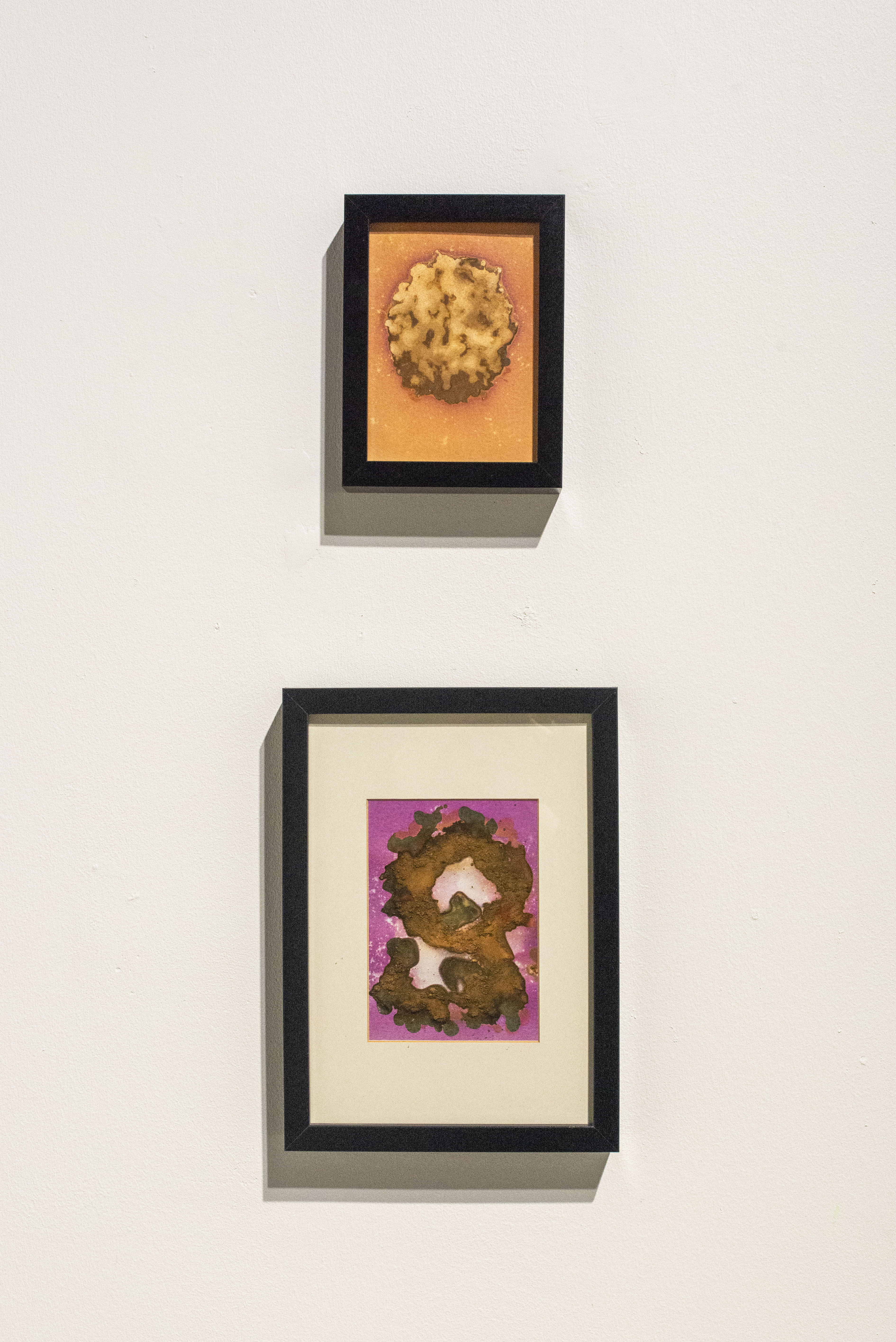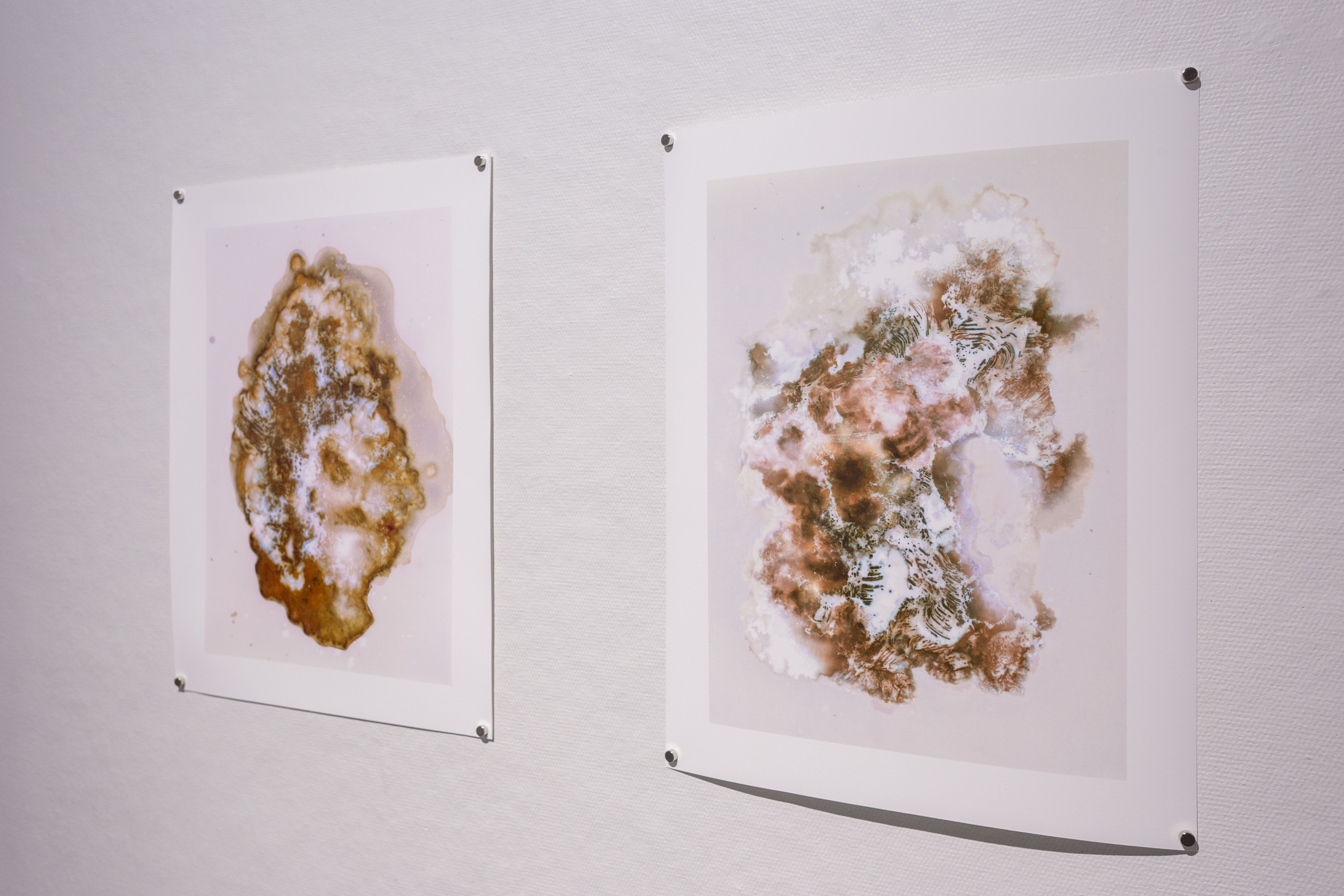 CYAN gallery presented me as invited to Nordic Analog Network's Artist in Residence programme at the CYAN Darkroom in April-May in Oslo. My exhibition works included photograms made with caffenol developer, soil- and forest material chromatographs, chemigrams and lumen prints. My darkroom work was experimental and exploratory, while at the same time it had a focus on bioart and a scientific method via soil chromatographs. The chemigrams include using a chemical mixture which contains e.g. parts of soil and forest materials such as lichens and moss in the 'Light beings alchemy I-II' prints. I displayed the chemigrams both in analog form and as pigment prints, in which they have been scanned digitally in order to preserve the colors and physical texture that's been created on top of the photographic paper during its exposing to light. For me, the alternative processes in the residency’s darkroom photographs had a certain sense of magic and I sought ways of revealing something invisible, abstract or unknown in the nature and bring it visible and multi-meaningful via the freedom of art.